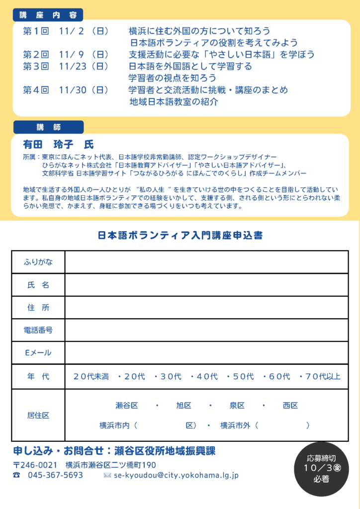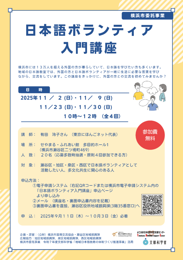 瀬谷区・旭区・泉区・西区での日本語学習支援に関心がある方は、ぜひご参加ください。